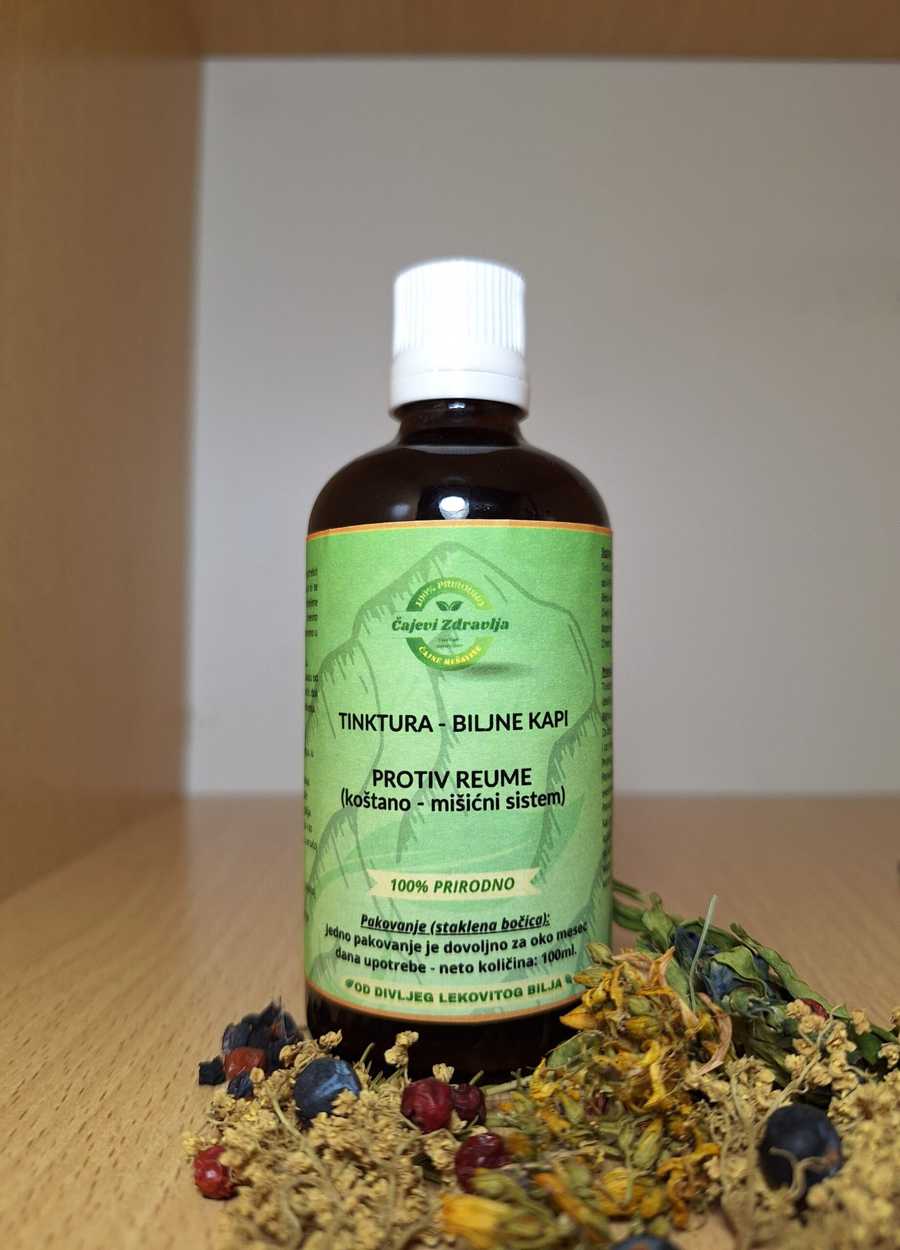 Tinktura od divljeg lekovitog bilja, u alkoholnom rastvoru od 45% prirodnog porekla.
